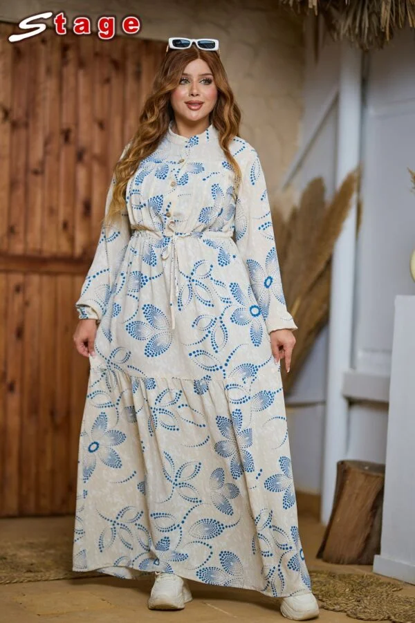 فستان مصنوع من خامه الكتان الناعم المعالج ضد الانكماش مع طباعه عاليه الجوده
