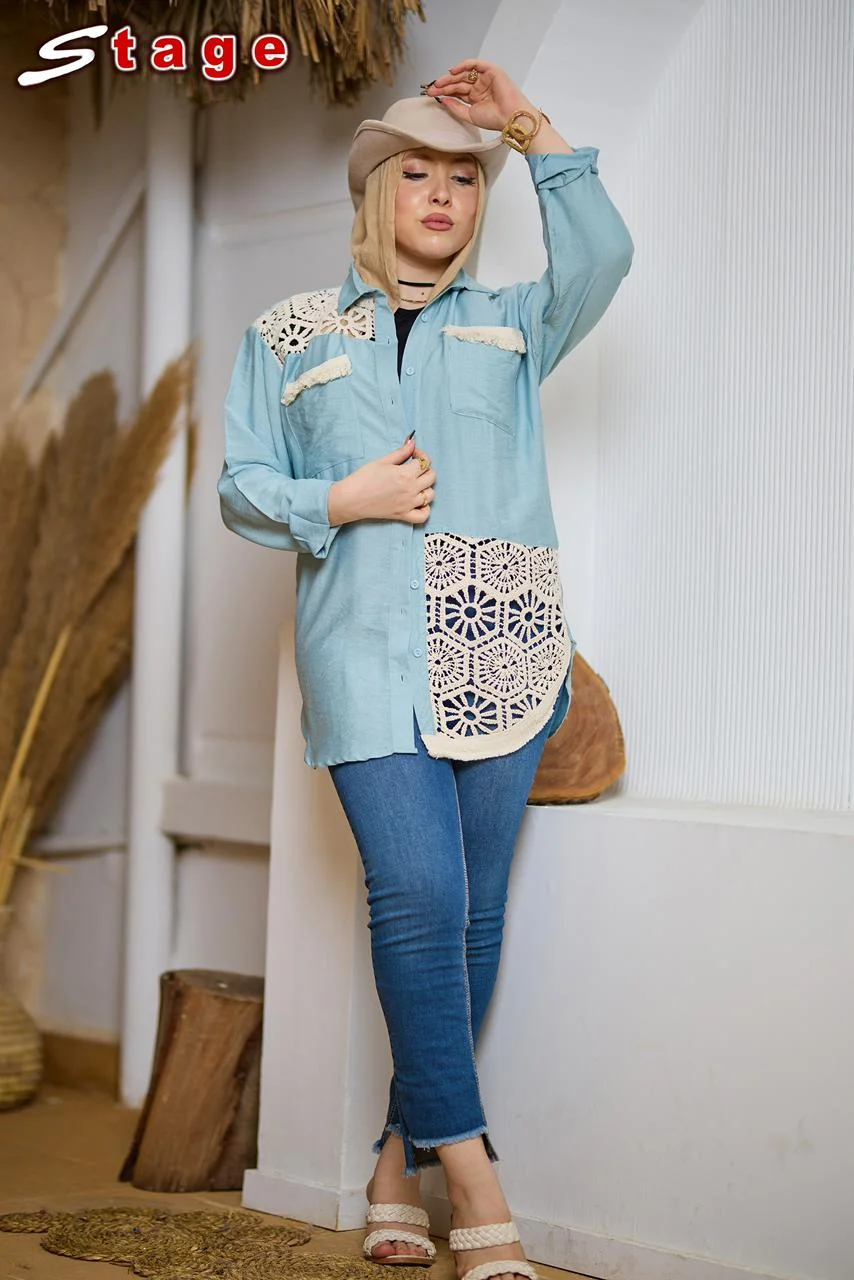 شميز مصنوع من خامه الكتان المعالج ضد الانكماش مع تطعيمات من الجبير القطن الراقي
