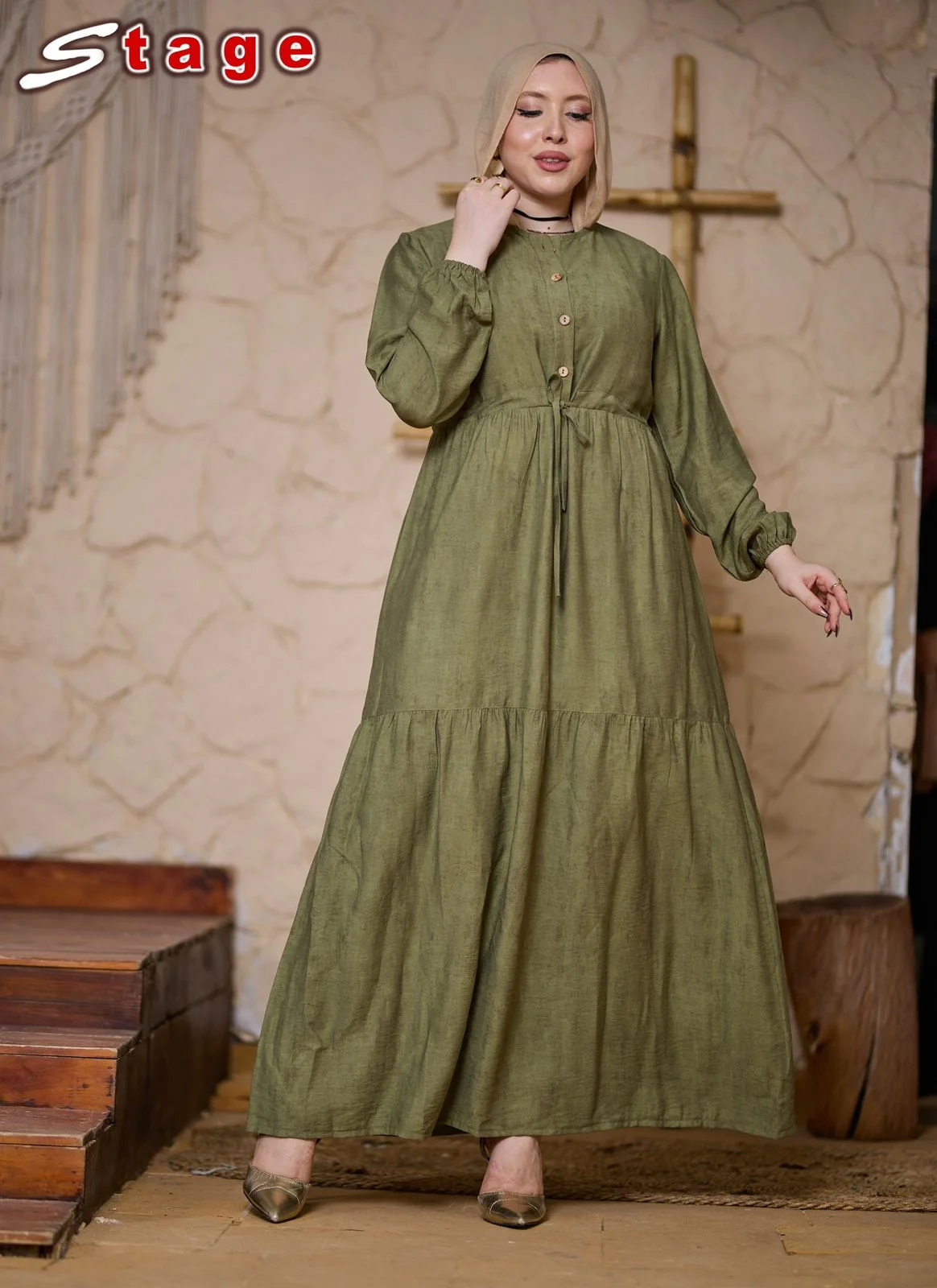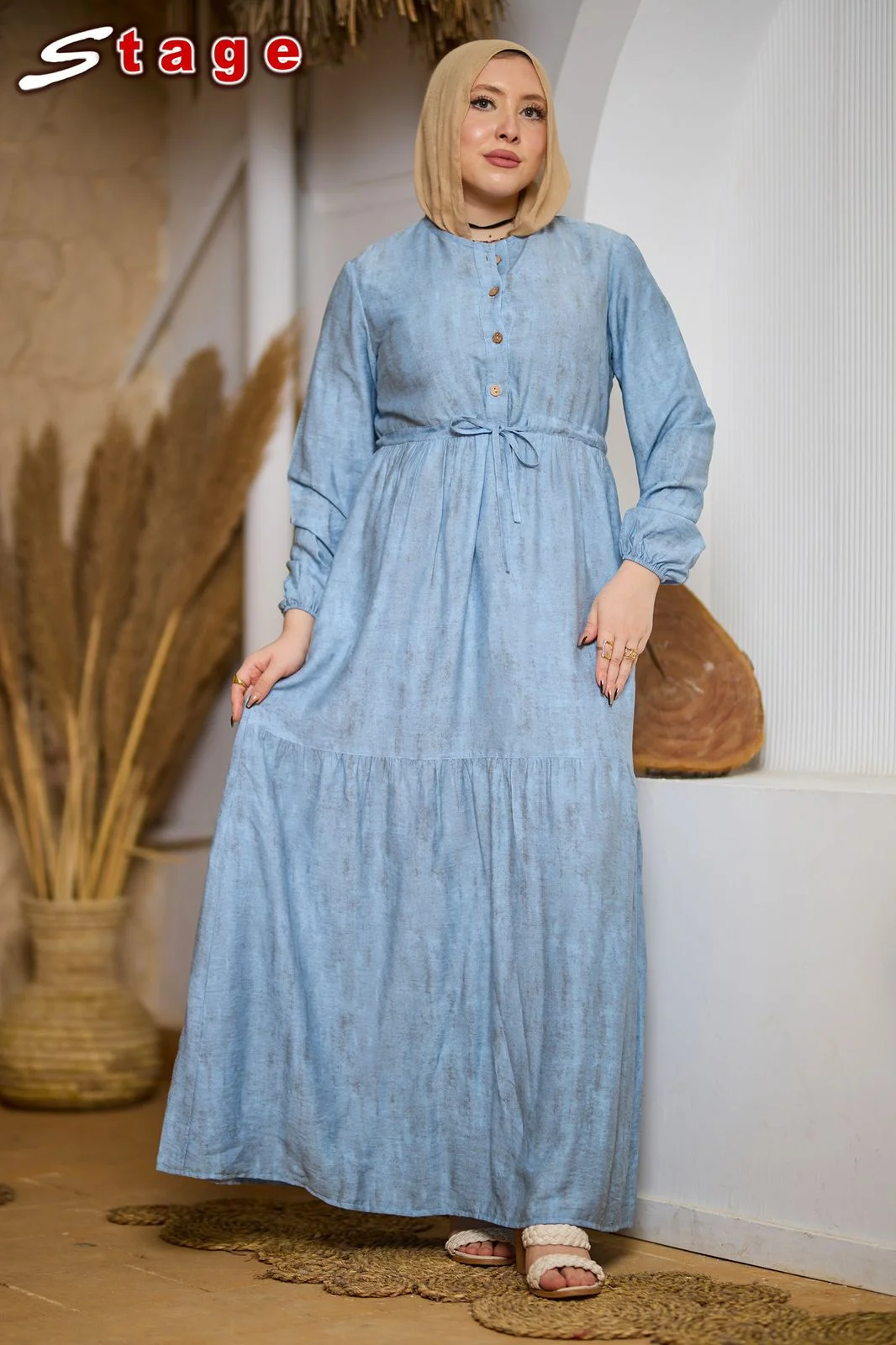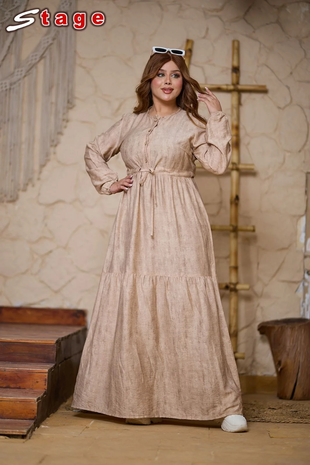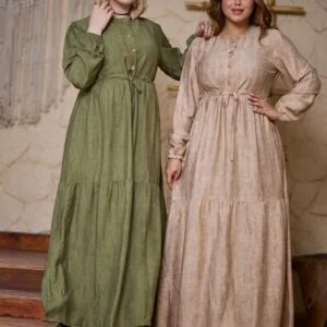 فستان زوق راقي مصنوع من خامه الكتان الجنجاه بتصميم متميز